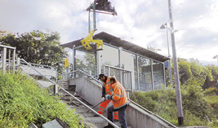 Am Bahnhof Augsburg-Hochzoll wurden alle Treppen zu den Bahnsteigen 1 und 2 saniert. Dazu wurden die alten Betontreppenbeläge vollständig abgetragen und durch neue Stiegenelemente ersetzt.
