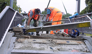 Täglich für die Deutsche Bahn im Einsatz – sehen Sie nachstehend einige Beispiele aus unserem breiten Leistungsspektrum rund um die Sanierung und Instandsetzung von Bahnsteigen und Bahnübergängen. Wir sorgen am Gleis für Trittfestigkeit und Sicherheit.