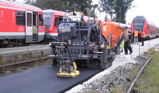Am Regional-Bahnhof in Schwindegg im Landkreis Mühldorf am Inn wurde der komplette Bahnsteig-Streifen am Gleis 1 neu asphaltiert. Für den Bahnsteig 2 wurde ein Streifen gefräst und ebenfalls die gesamte Asphaltdecke erneuert.